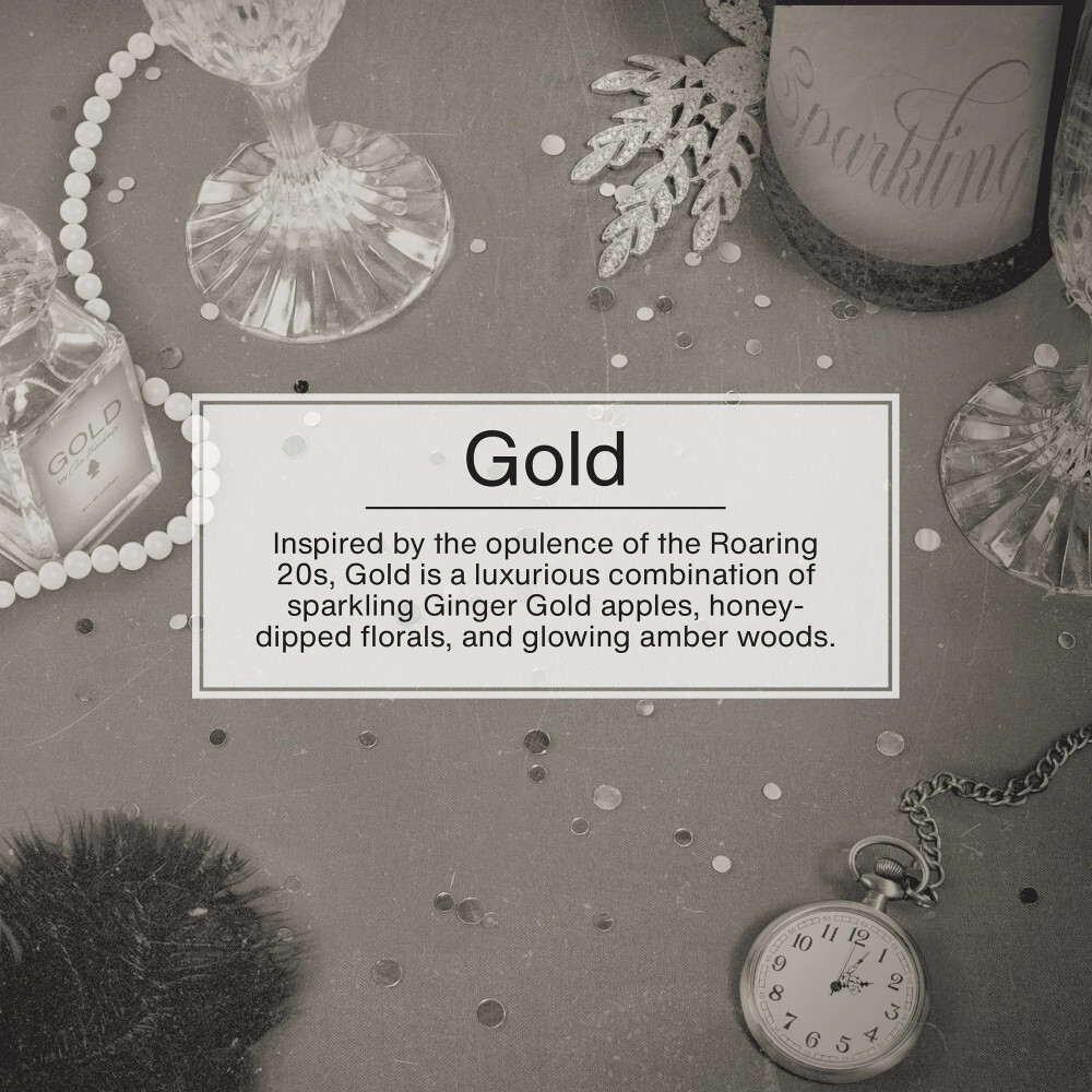Inspired by the opulence of the Roaring 20s, Gold is a luxurious combination of sparkling Ginger Gold apples, honey-dipped florals, and glowing amber woods.