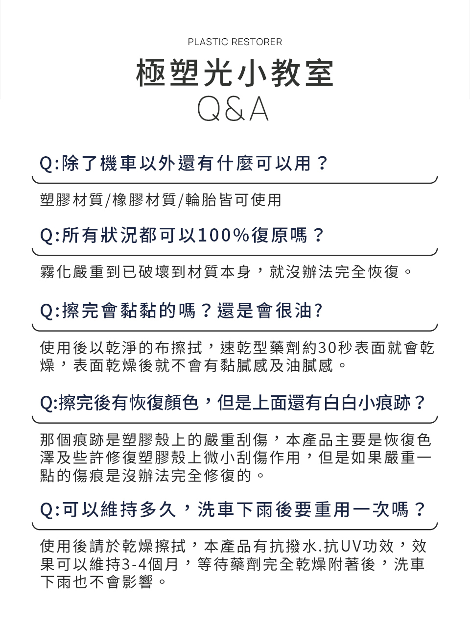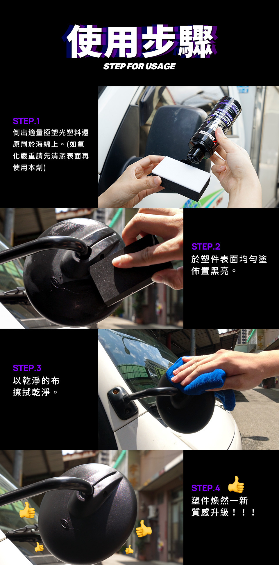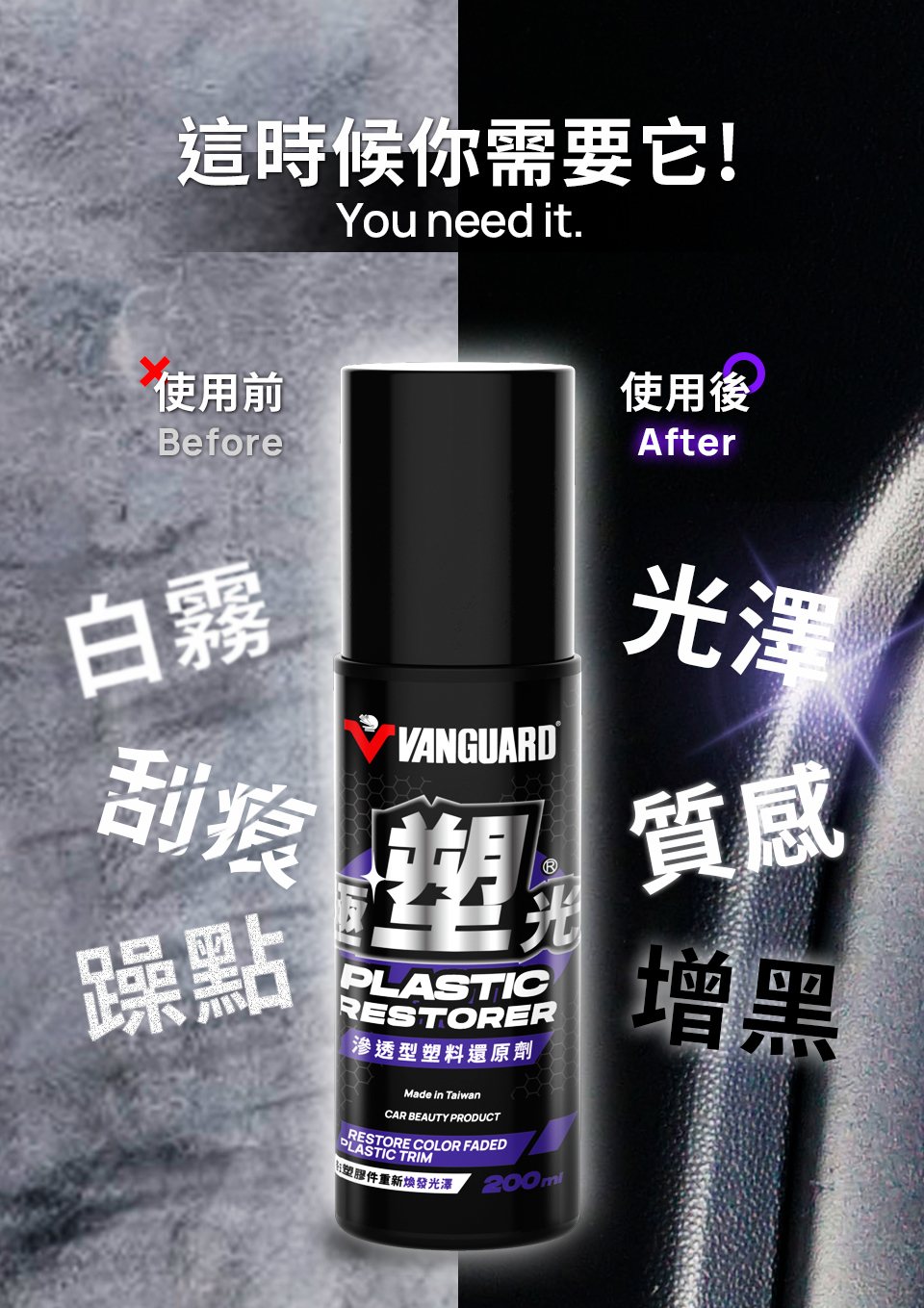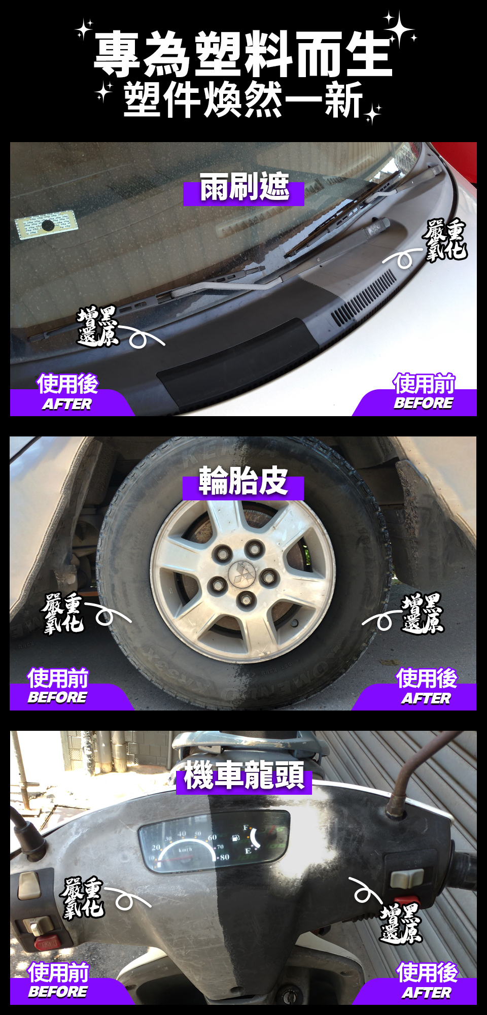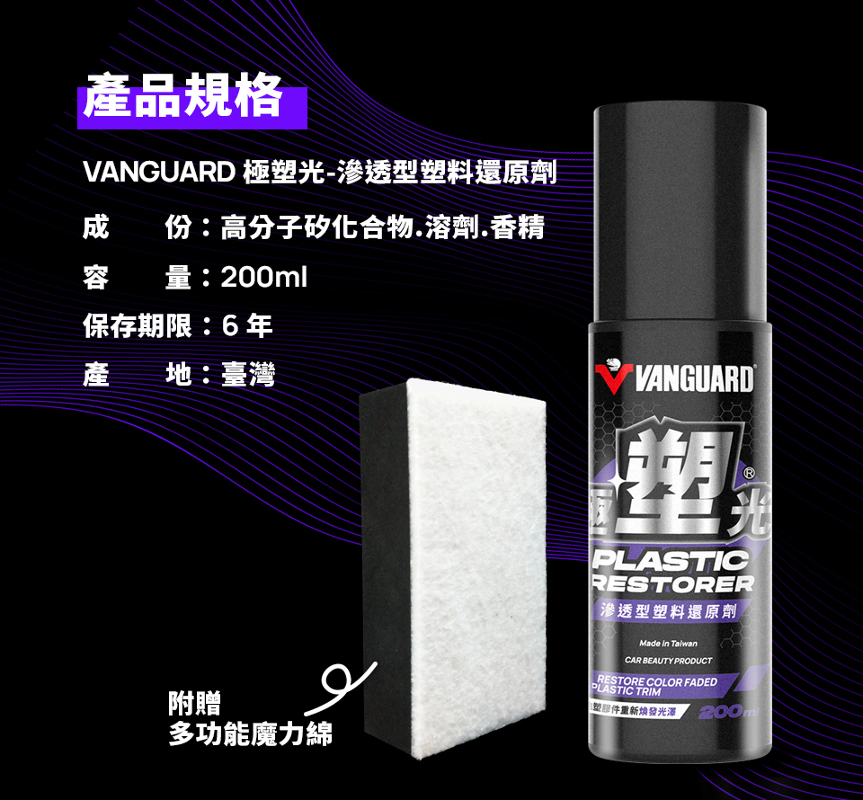 增亮光澤,有效讓褪色泛白的塑件恢復光澤