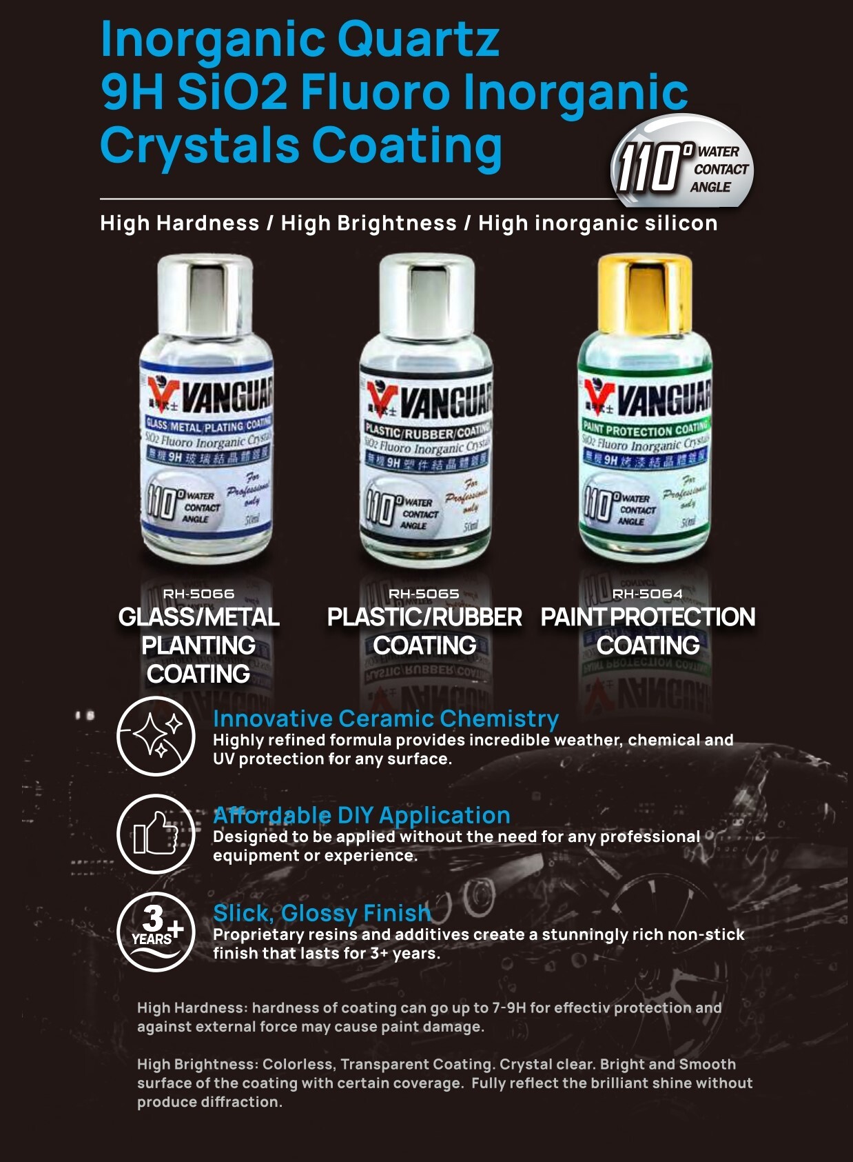 世界頂級結晶科技,無機石英9H結晶體鍍膜,無機SiO2含量高達76%以上,提供7~9H高硬度堅固3D交織結構保護層。(施作前需有鍍膜經驗或專業鍍膜人員指導)