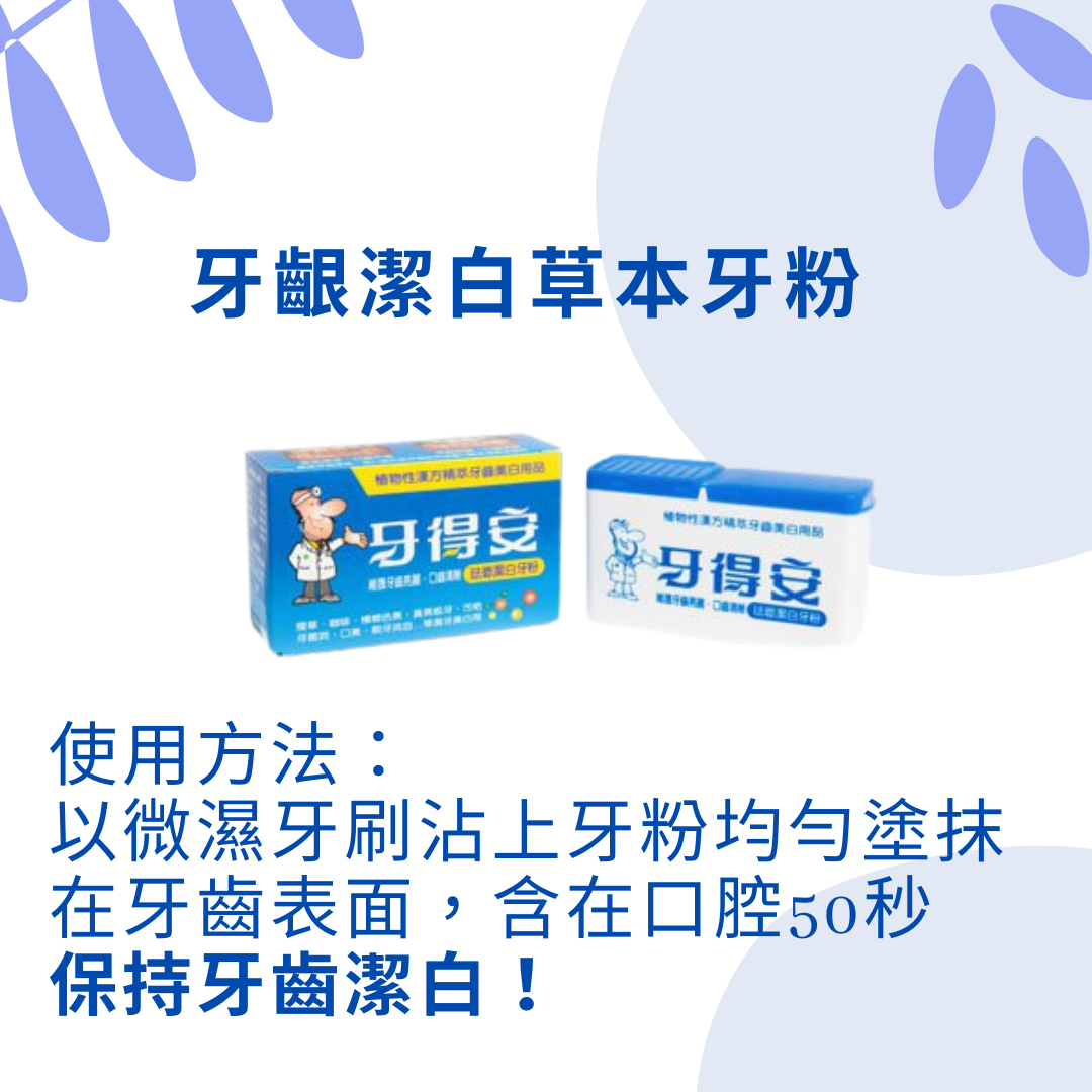 針對牙齒亮白使用。植萃泡沫分解齒面色斑,針對外源性色斑所造成之成色不均改善,14日有效亮白,零刺激牙齦護理且可預防口腔疾病。